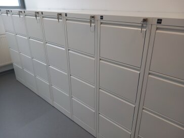 Kartoteční skříň disponuje blokovacím mechanismem zásuvek, který dovolí vysunutí pouze jedné zásuvky a slouží na ochranu před převážením.