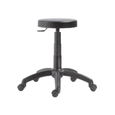 Vyšetrovacia stolička TN10PU s kruhovým sedadlom zhotoveným z čierneho polyuretánu.