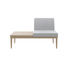Čalouněná sedačka na dřevěné lakované podnoži.