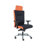 Stolička disponuje vysokým priedušným operadlom s integrovaným podhlavníkom.